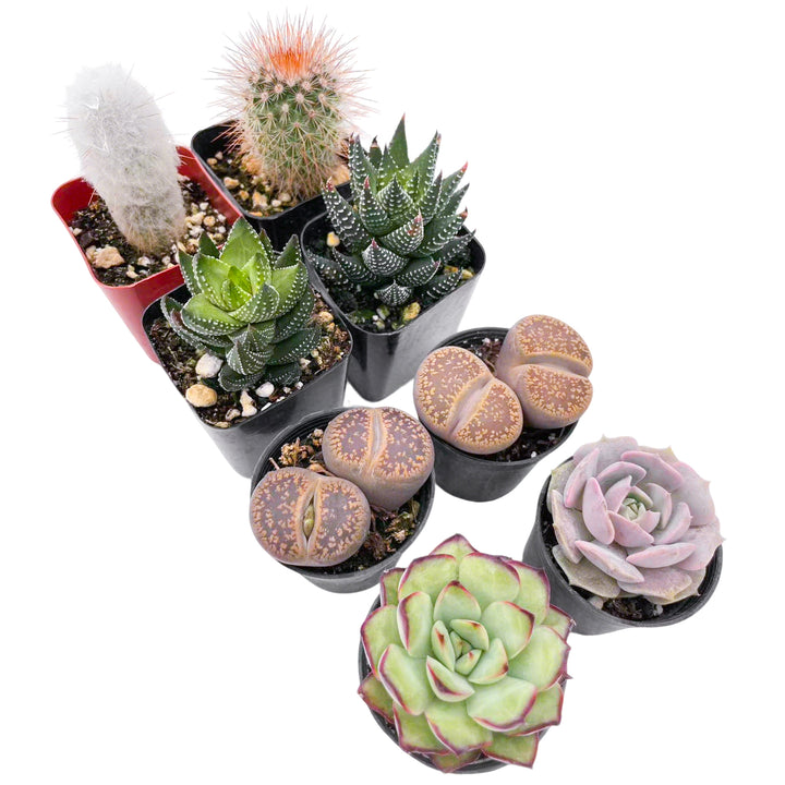 2 Cactus + 2 Haworthia + 2 Lithops + 2 Echeveria Succulents (2", Random Varieties)
