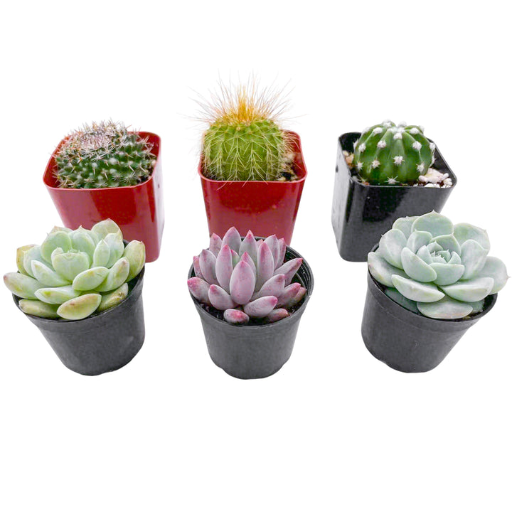 3 Cactus + 3 Echeveria Succulents (2", Random Varieties)