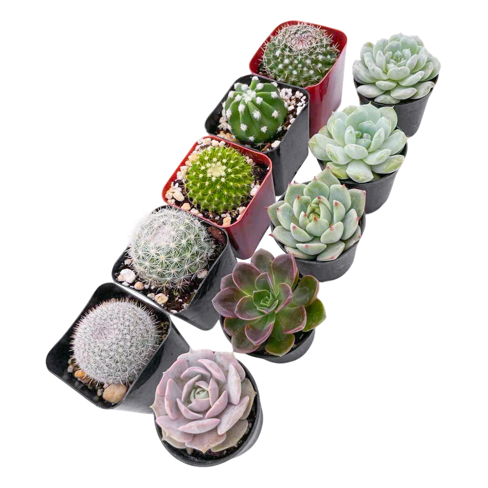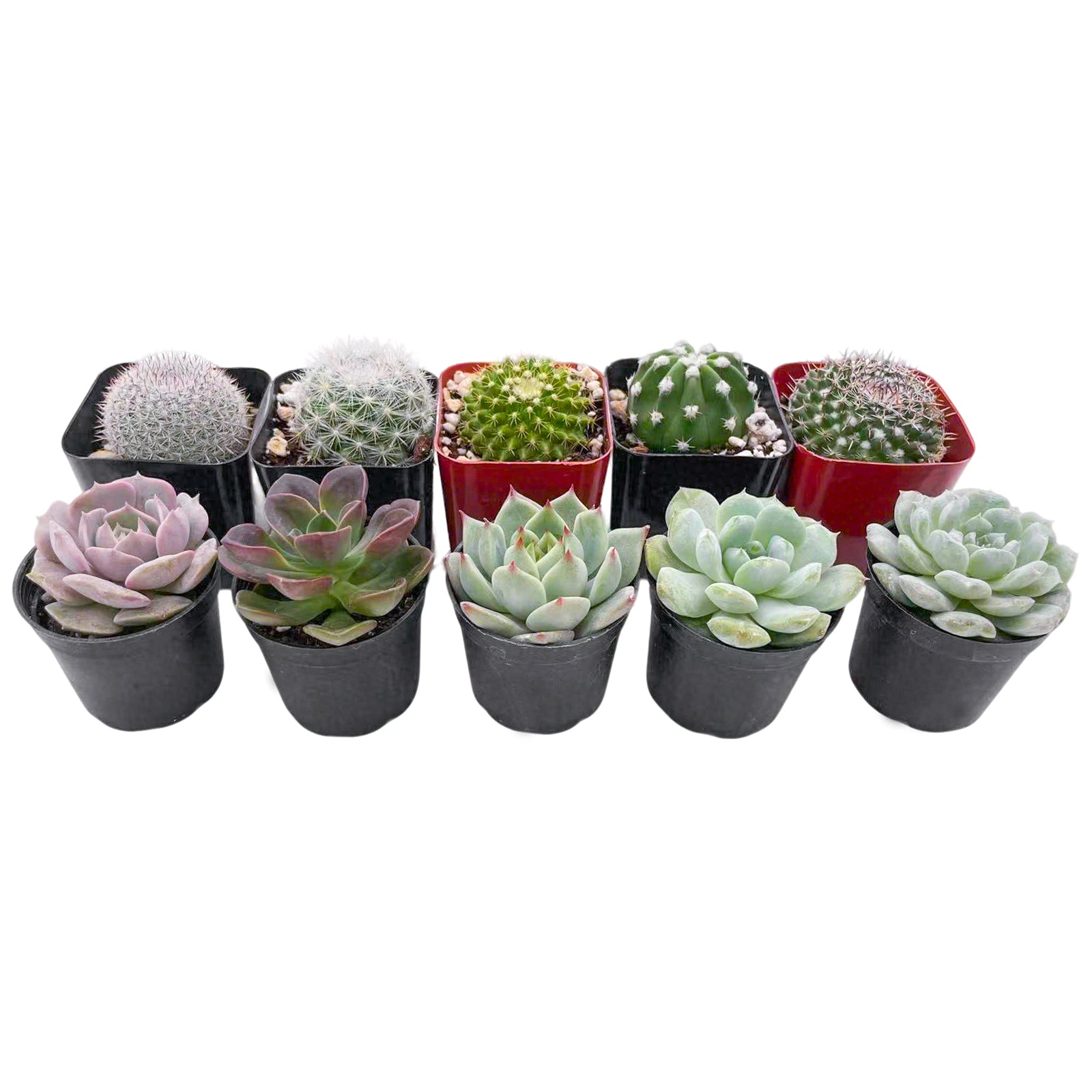 5 Cactus + 5 Echeveria Succulents (2", Random Varieties)