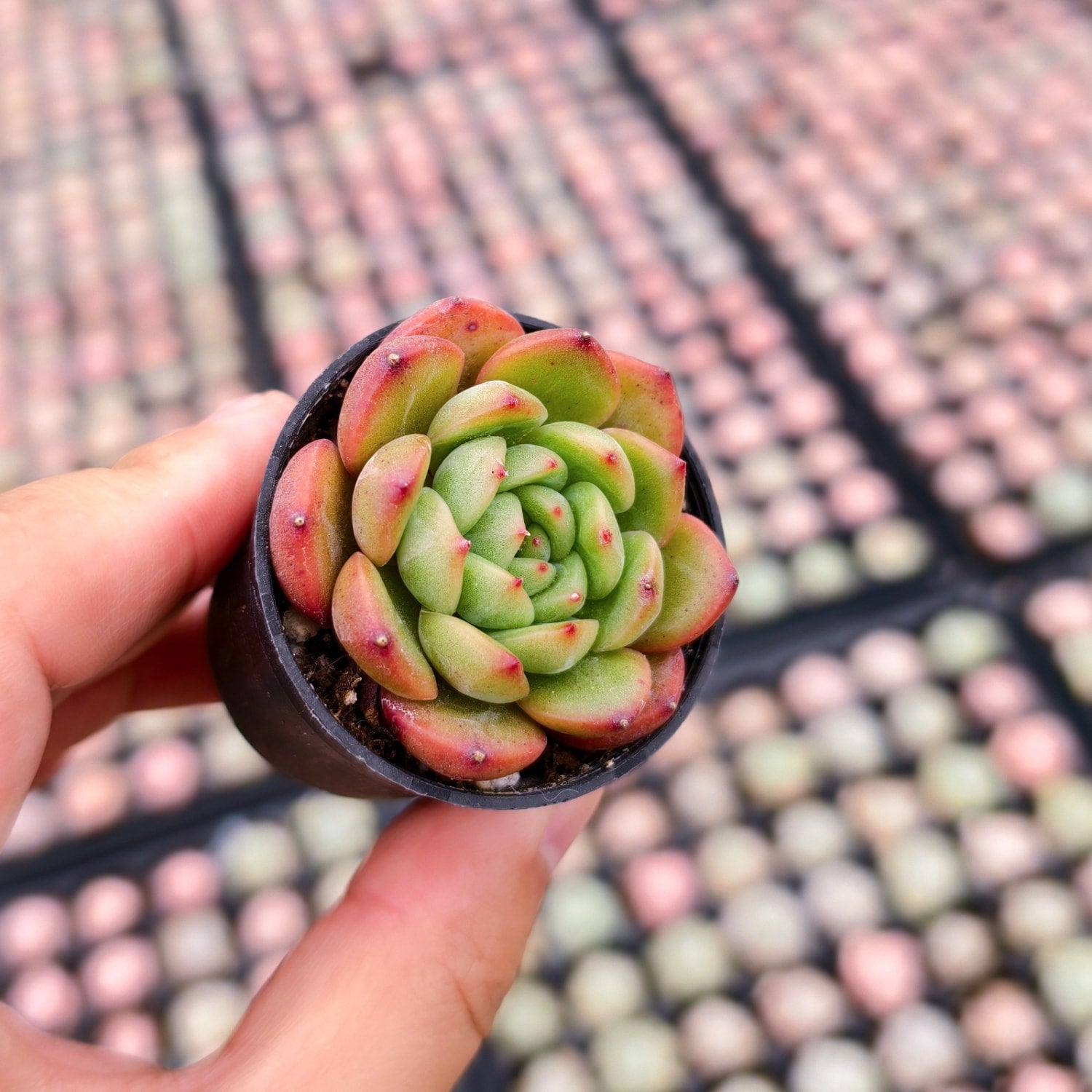 Sun/Location: To achieve the signature "Red Veil" colors, this variety requires full to bright indirect sunlight (at least 6 hours daily). It is a sun-loving plant that thrives on south-facing windowsills or bright outdoor patios. The intense waxy coating helps it handle higher light levels than thinner-leaved succulents.