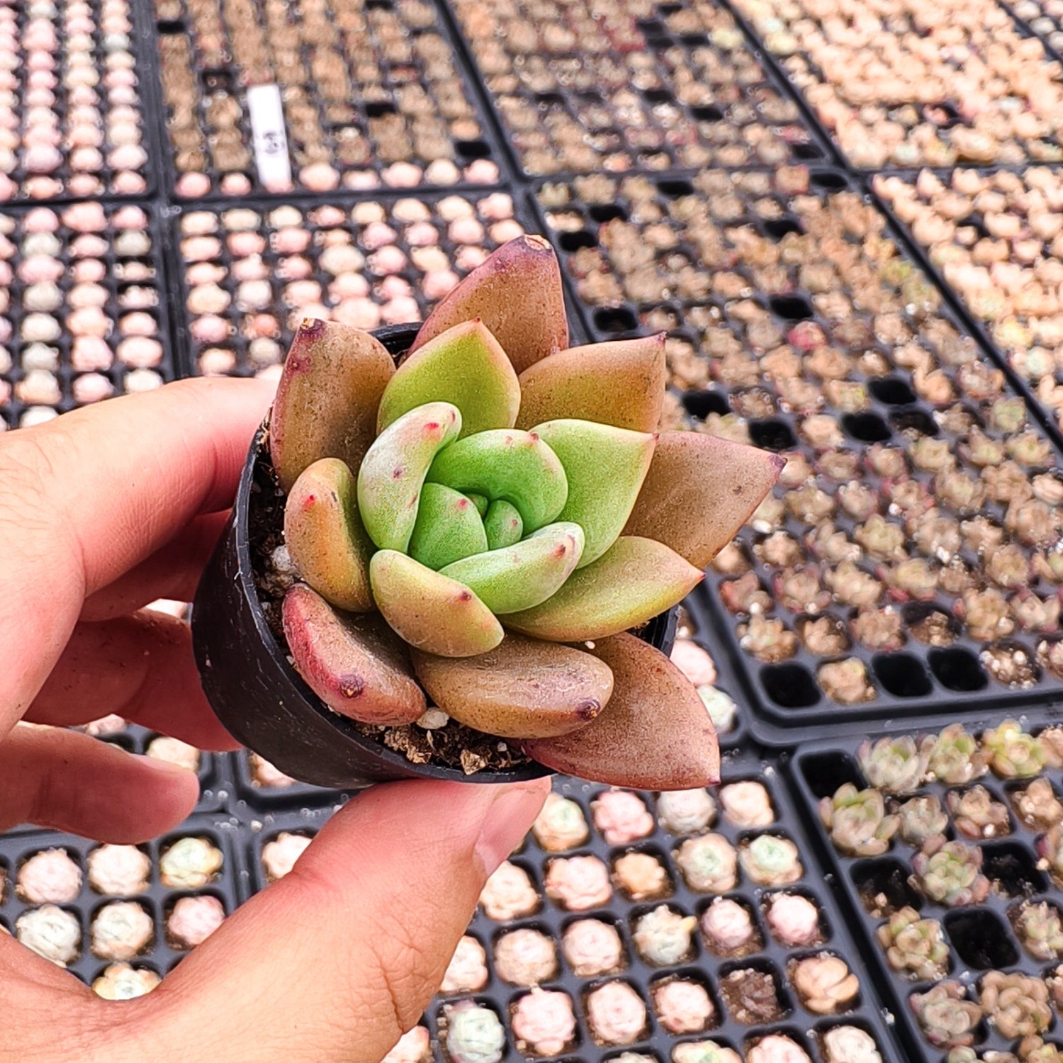 Echeveria 'Baekya' is a masterpiece of succulent breeding, forming a dense, architectural rosette of remarkably thick, inward-curving leaves. Its daily look is a cool, sophisticated lime green with a subtle, waxy finish. Even in dormant period, it won't fade to dull green. This is the distinct character different from other E. Champagne.