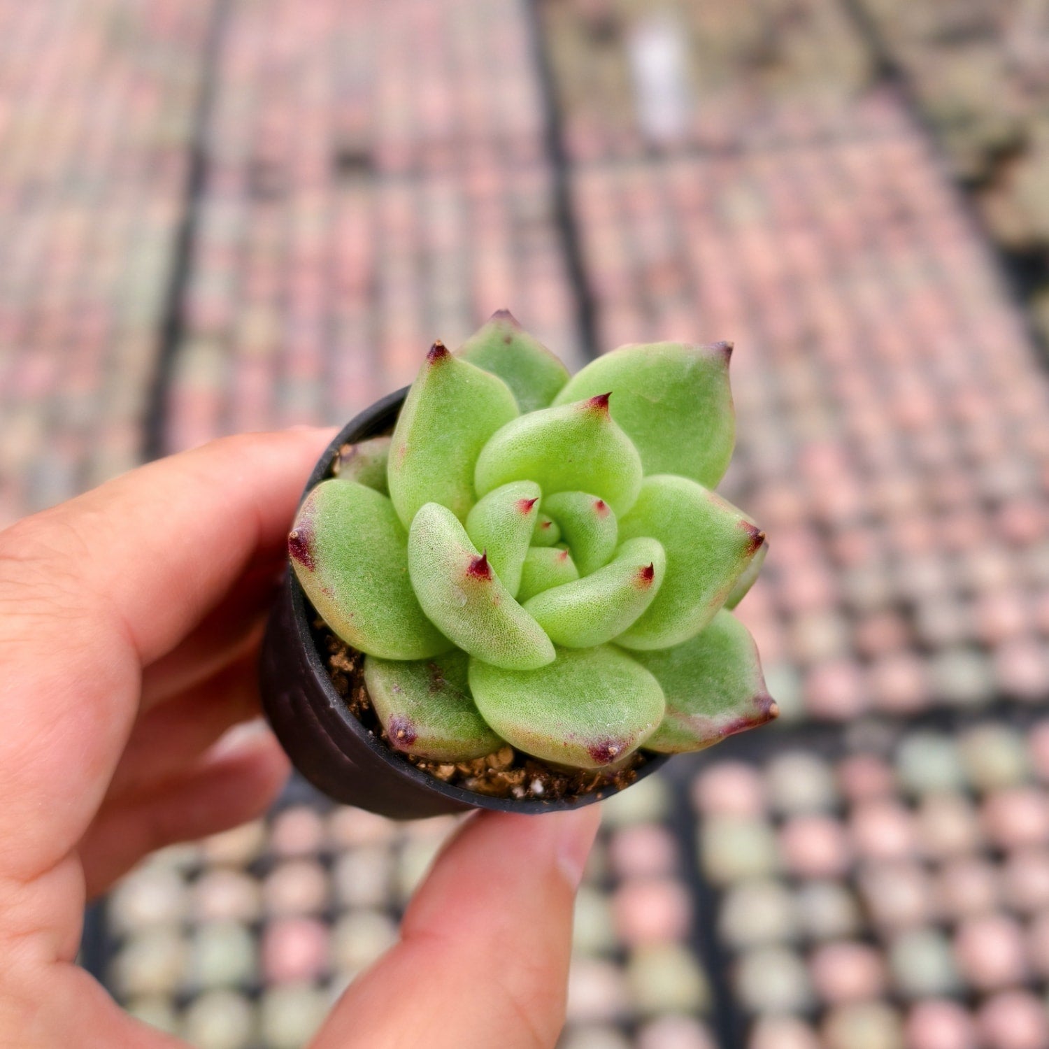 Watering: Like most premium Echeverias, 'Godot' prefers the "soak and dry" method. Water deeply only when the soil is completely dry from top to bottom. During the cooler months, when the red colors are often at their peak, reduce watering frequency to once every 3-4 weeks to encourage deeper pigmentation and protect its sensitive root system.