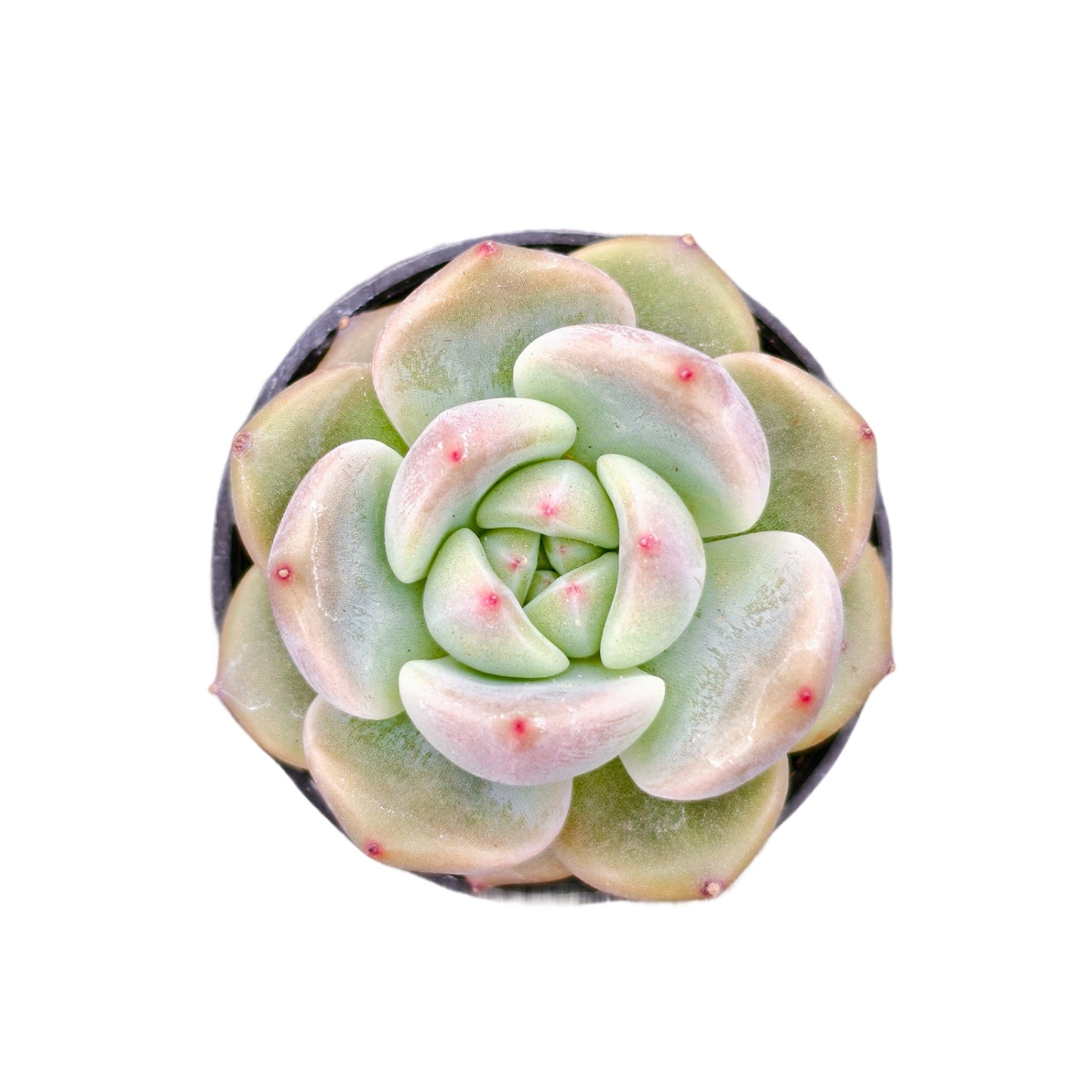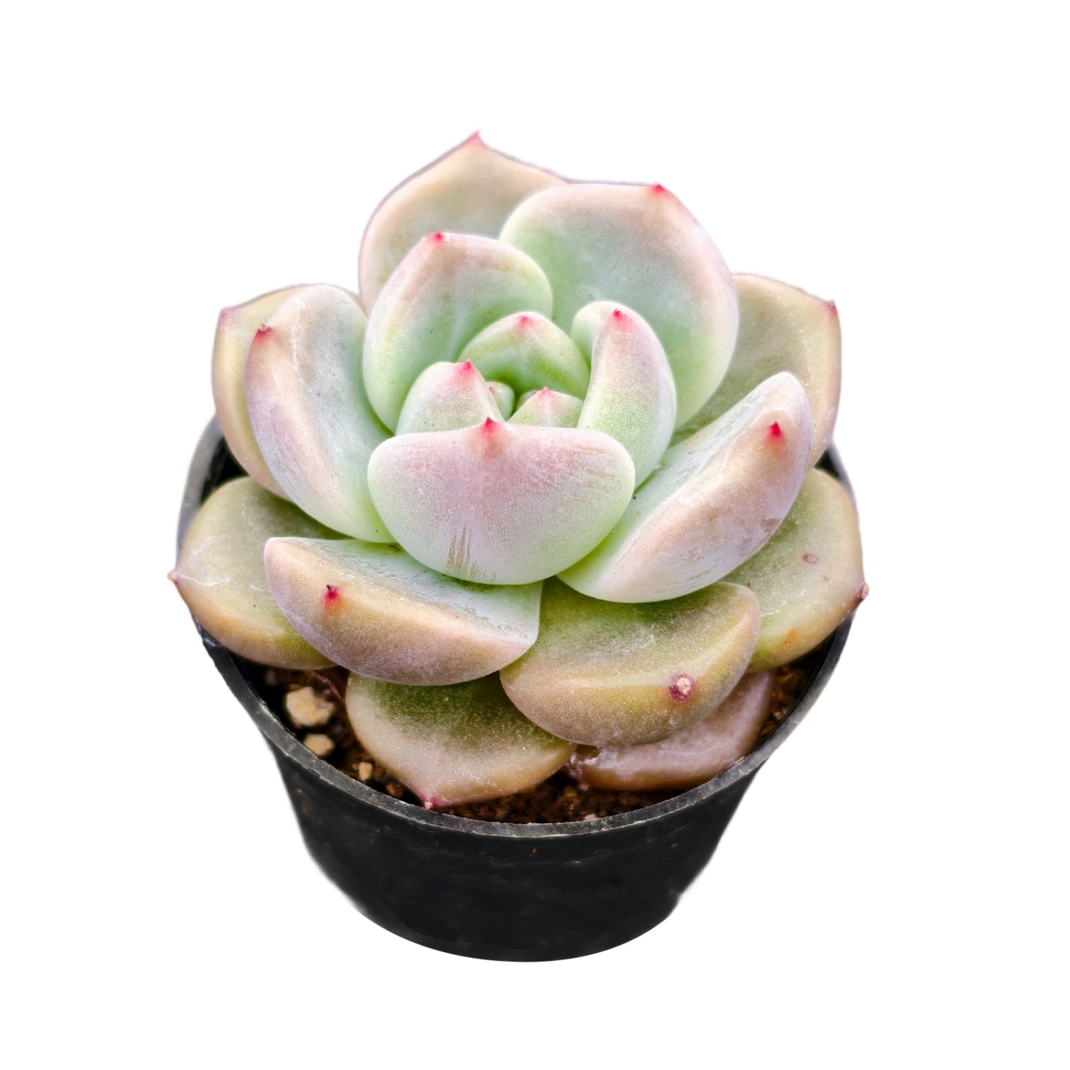 Echeveria 'Seagull' is an elegant variety characterized by its fluid, wing-like leaves that form a perfectly symmetrical, open rosette. Its base color is a refreshing, pale sea-foam green that feels light and airy. When this variety catches enough "wind" (bright sunlight) or experiences cooler temperatures, it develops striking "sunset" accents—the leaf tips and margins blush with a beautiful gradient of soft pink and deep, coral red.