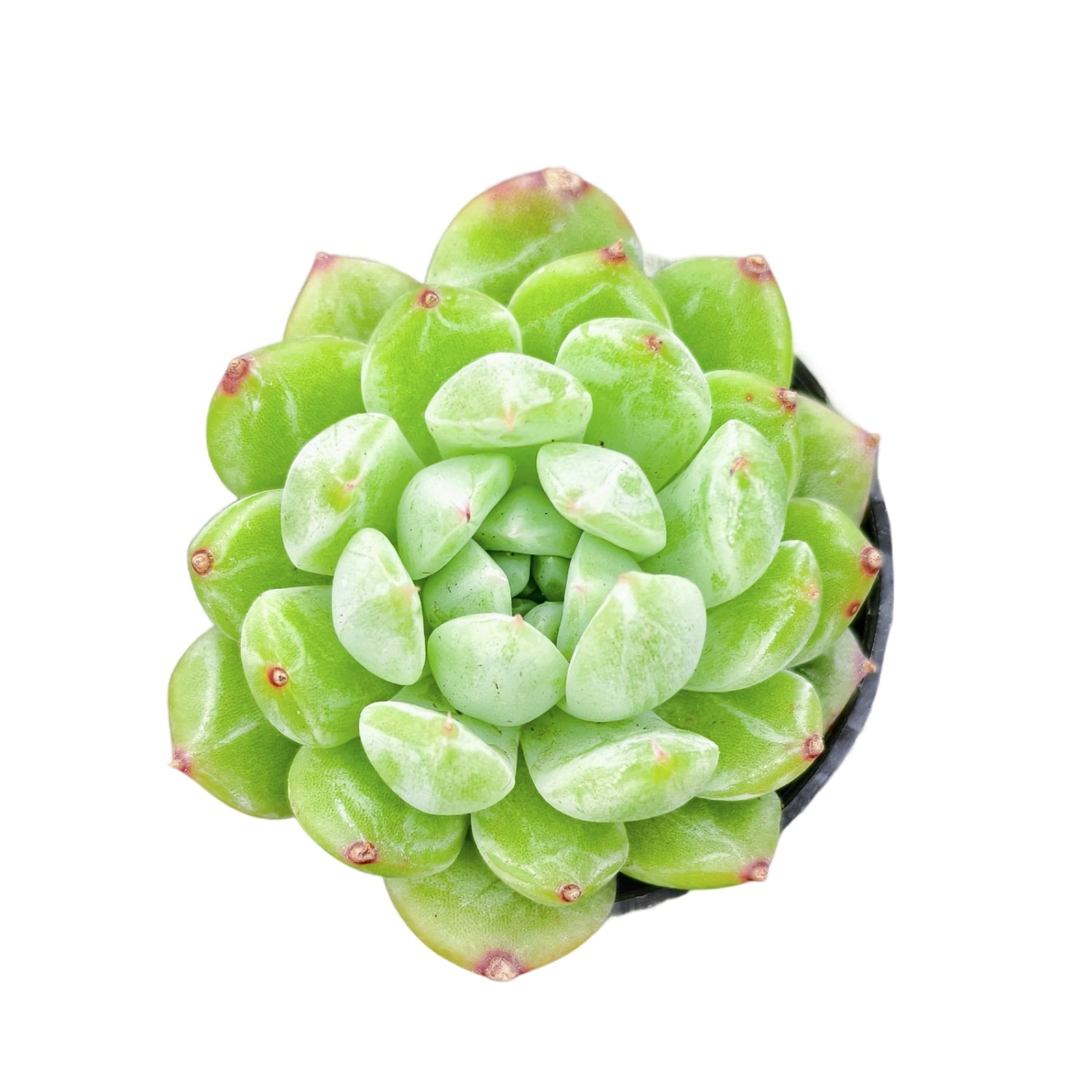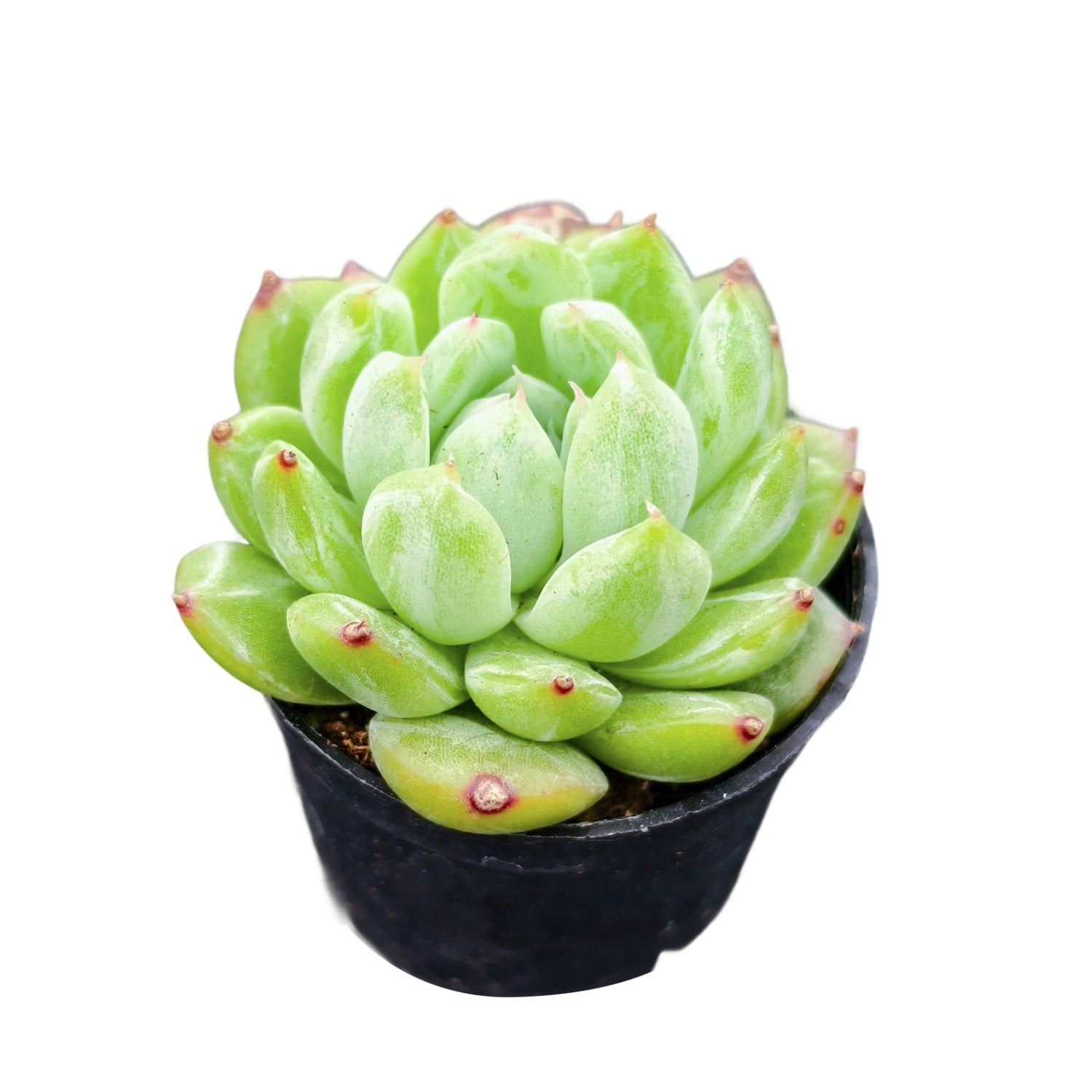 When this plant is "happily stressed" by bright sun or cool evening temperatures, it undergoes a stunning transformation: the leaf edges develop sharp red tips, and the entire rosette blushes with a gentle, light pink glow. The contrast between the lime center, white structural lines, and pink-to-red accents makes 'Snow Jenny' a true centerpiece for any collection.