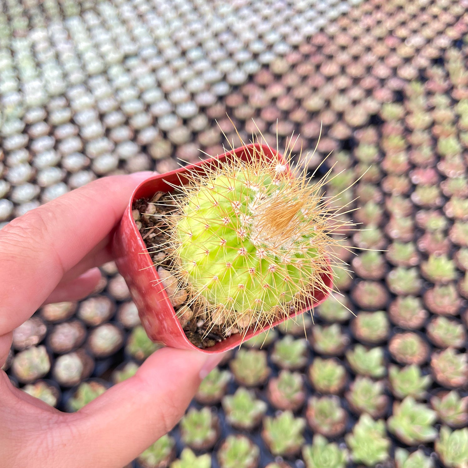 Parodia Schumanniana, a charming globular cactus belonging to the Cactaceae family, is native to the grasslands and rocky slopes of southern Brazil. Renowned for its compact, rounded form and vibrant floral displays, this slow-growing succulent is an ideal choice for small-space cultivation—especially in its 2-inch juvenile stage, where it exhibits a plump, symmetrical shape that fits perfectly on desktops, windowsills, or mini succulent arrangements.