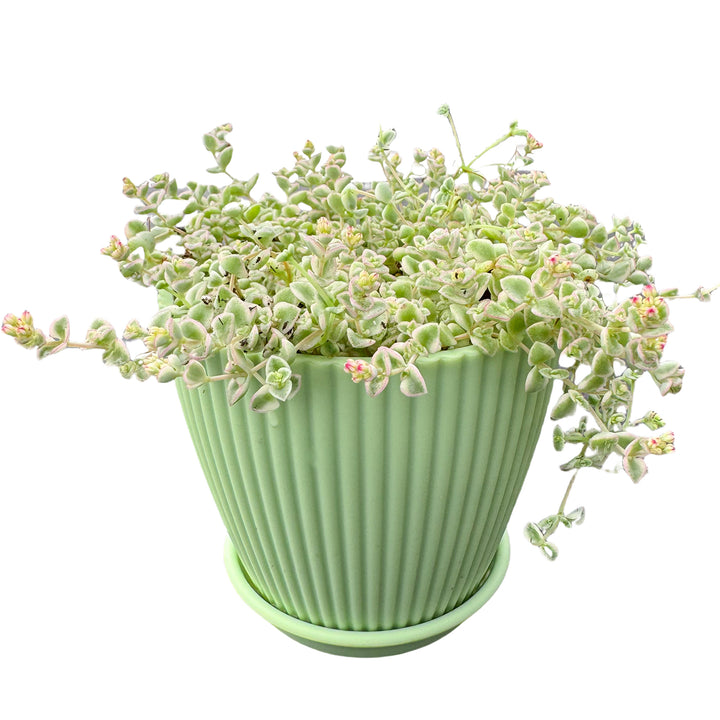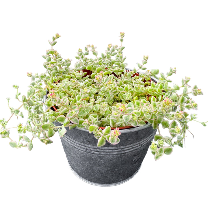 Sedum Little Missy is a delicate variegated sedum succulent with tiny pale-green, pink-flushed leaves. Due to their smaller shape, they are popular as the addition to ground gardens or succulent centerpieces. Pink blooms grow at the end of stems in summer.