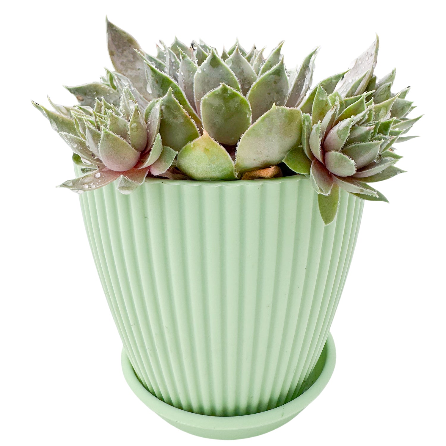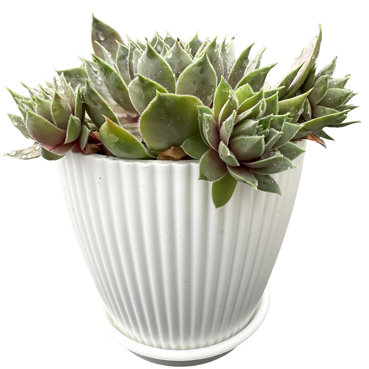 Sempervivum succulent plants will slowly change color under the right stress, turning pink and purple until they turn burgundy, which is very beautiful. The succulent will produce new offsets that also be called chicks.