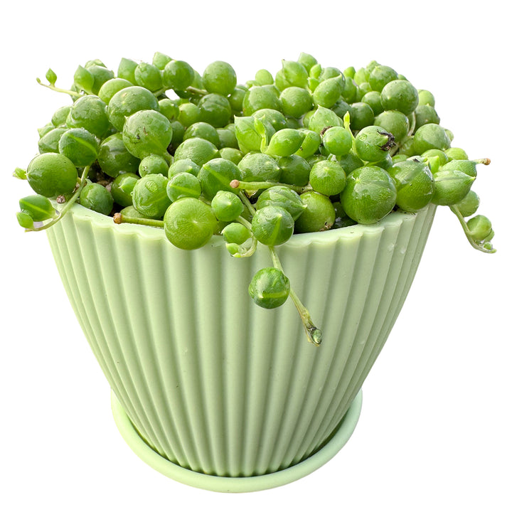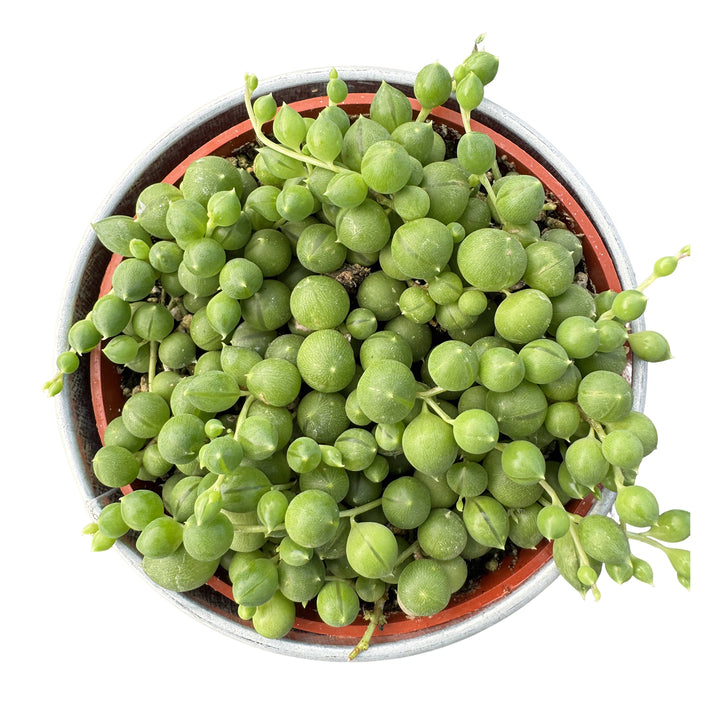 Watering: String of Pearls is very sensitive to overwatering. Besides using a well-drainage soil mix and container with drainage holes, the best way of watering is the 'soak-and-dry method. Water deeply enough for water to run out of the drainage hole, then wait for the soil to fully dry before watering again.